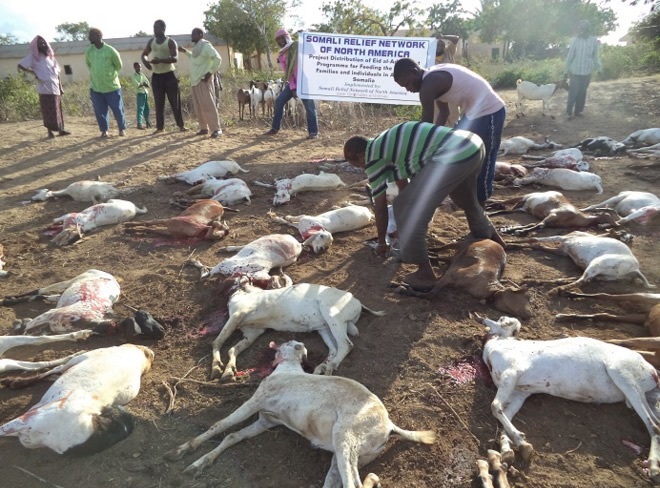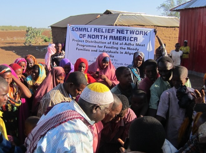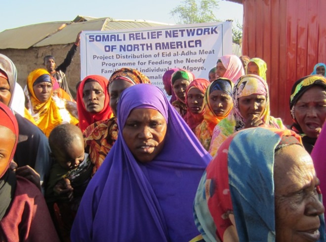 Axad, Oktoobar 12, 2014 (HOL) — Urur lagu magacaabo Somali Relief Network of North America aya 900 oo qoys oo danyar ah u qaybisay hilib, kaasoo lagu maamuusayay maalmihii Ciidul-Adxa, iyadoo dadka hilbaha loo qaybiyay ay ku noolaayeen degmada Afgooye ee gobolka Shabeellada Hoose.