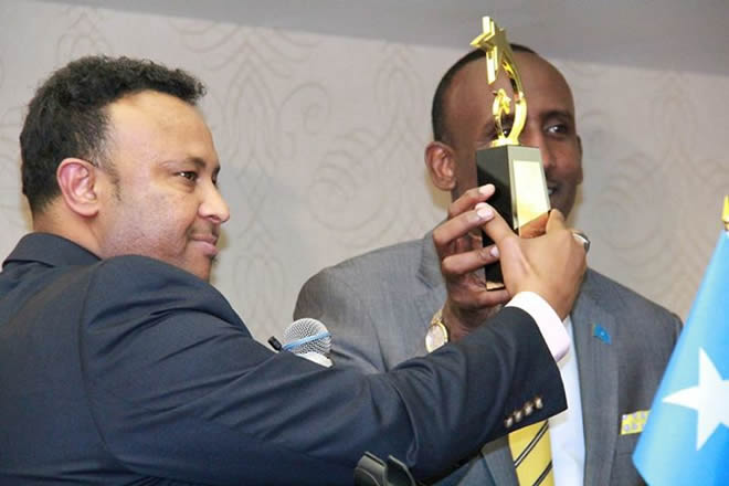 Ugu dambeyn, madaxa ururka Somalia Citizens League, Jabriil Afyare ayaa guddoonsiiyay abaalmarin qaali ah wasiirka warfaafinta Soomaaliya.