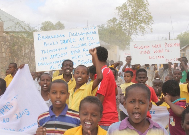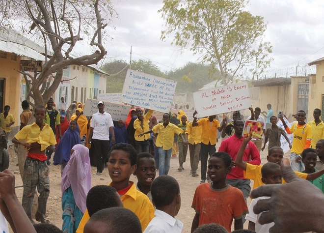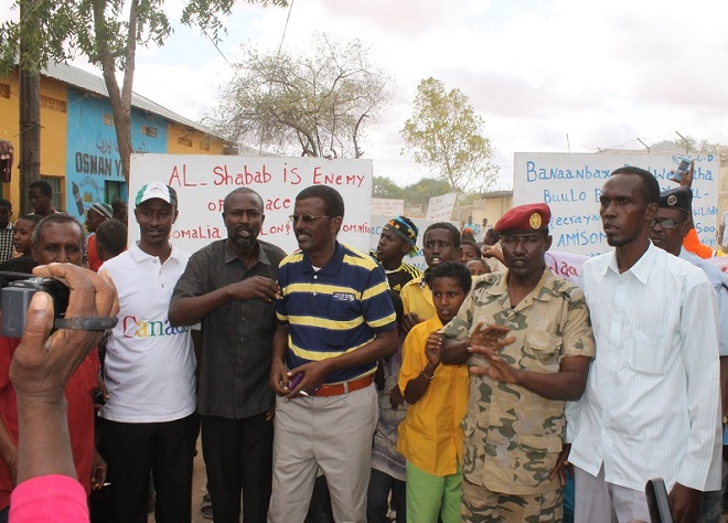 Khamiis, September 11, 2014 (HOL) — Degmada Buulo Burte ee gobolka Hiiraan ayaa waxaa ka dhacay bannaanbixii ugu horreeyay loo looga soo horjeedo Al-shabaab, kasoo ay ka qaybgaleen dadweynaha degmadaas ku nool, saraakiisha ciidamada iyo ardayda wax ka barata dugsiyada.