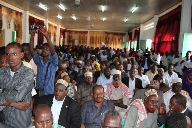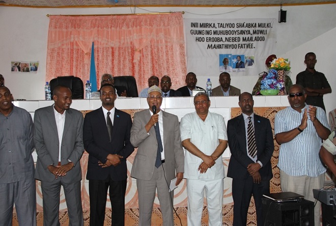 Axad, September 14, 2014 (HOL) — Ra’iisul wasaaraha Somalia, C/weli Sheekh Axmed iyo guddoomiyaha baarlamaanka Soomaaliya, Maxamed Cismaan Jawaari ayaa si rasmi ah uga furay Baydhabo shirweynaha dib-u-heshiisiinta gobollada Koonfur-galbeed Soomaaliya, kaasoo socon doona 45 cisho.