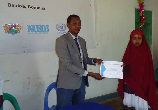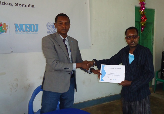 Isniin, Ogoosto 10, 2015 (HOL) — Ururka Suxufiyiinta Qaranka Soomaaliyeed ee NUSOJ ayaa tiro ka mid ah Suxufiyiinta ka howlgala Gobolka Bay Tababar ugu soo xiray degmada Baydhabo ee Xarunta Gobolka Bay, iyadoo Tababarkan uu socday muddo laba Casho ah.