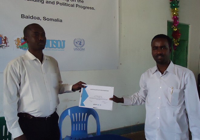 Siminaarkan ayaa waxaa Maal-geliyay xafiiska Qaramada Midoobay ee Somalia UNSOM, iyadoo ay fududeysay NUSOJ, waxaana tababarkan uu noqonayaa kii labaad oo lagu qabto Gobollada Dalka, iyadoo horay Tababarkan oo kale ay NUSOJ ugu soo qabatay Magaalada Kismaayo ee Gobolka Jubbada Hoose.