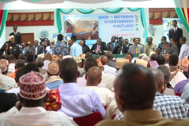 Talaado, Ogoosto 25, 2015 (HOL) — Madaxweynaha Puntland, Cabdiweli Maxamed Cali Gaas ayaa maanta Magaalada Gaalkacyo ee Gobolka Mudug ka furay Shirka Wada-tashiga Beelaha Puntland Wajigiisii Koowaad, kaasoo ay ka Qayb-galayaan Ergooyin Matalayay Beelaha Puntland Deggen.