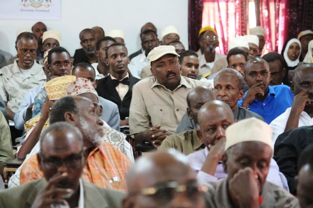 “Qorshihii Puntland ee aheyd markii hore idinku is dhisa, kadibna Soomaali baadi gooba waa lagu guulaystay , waxay dhinaca kale keentay hoos u dhac dhaqaale, taasoo sababtay in Puntland dhumiso deegaanno iyo dad-ba, dadku waxay is-weydiinayaan in dhaqaalaha iyo dadkaa lageeyay Xamar , waxaan qabaa inay sax aheyd sababtoo ah madaxdii Puntland ee markaa joogtay waxaa ay ka duulayeen in la helo midnimo Soomaaliyeed ‘’ ayuu yiri Gaas oo shirka furay.