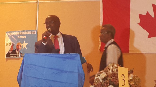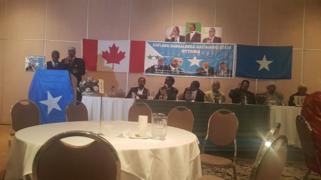 Isniin, Ogoosto 31, 2015 (HOL) — Iyadoo wali ay socdaan Xafladaha kala duwan ee lagu soo dhaweynaya Maamulka cusub ee Galmudug ayaa waxaa magaalada Ottawa ee dalka Canada lagu qabtay Xaflad lagu taageeray ay Maamulka Galmudug.