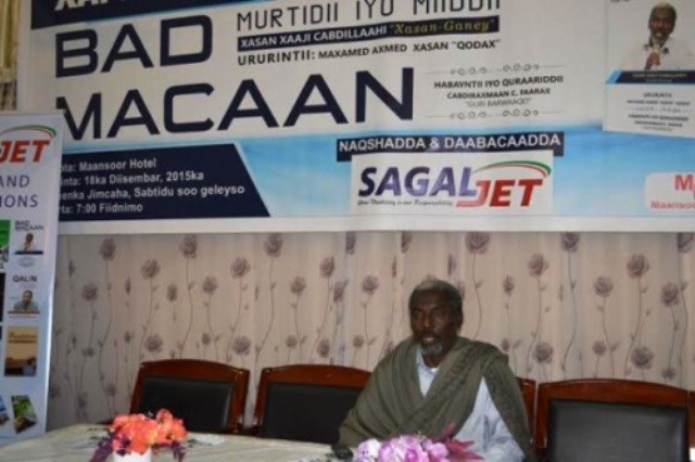 Isniin, December 21, 2015 (HOL) — Magaalada Hargeysa ayaa waaxa lagu soo bandhigay Buug cusub oo ka hadlaya suugaantii Abwaanka weyn ee Xasan Xaaji Cabdillaahi (Xasan Ganey) kaas oo loo bixiyey Bad macaan.