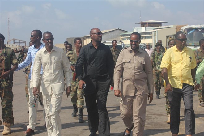 Madaxweeyne kuxigeenka Jubaland C/laahi Sheekh Ismaaciil (Fartaag), afhayeenka maamulka C/naasir Seeraar Maax, Wasiirka arimaha gudaha iyo amniga mudane Max'ed Warsame Darwiish, saraakiil iyo madax kale ayaa kormeeray dekedda Kismaayo halkaasoo la geeyay Markabka ay ciidamadu soo qabteen.