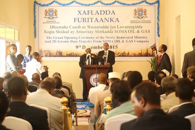 Arbaco, December 09, 2015 (HOL) — Waxaa Muqdisho lagu qabtay maanta munaasabad xarigga looga jawarayay dhismaha cusub ee wasaaradda batroolka iyo macdanta Somalia, taasoo ku taalla bartamaha magaalada Muqdisho, iyadoo wasaaraddu kula soo wareegtay xog-ururin oo la xiriirta baarista shidaal oo ay horay u sameysay shirkada Soma Oil & Gas.