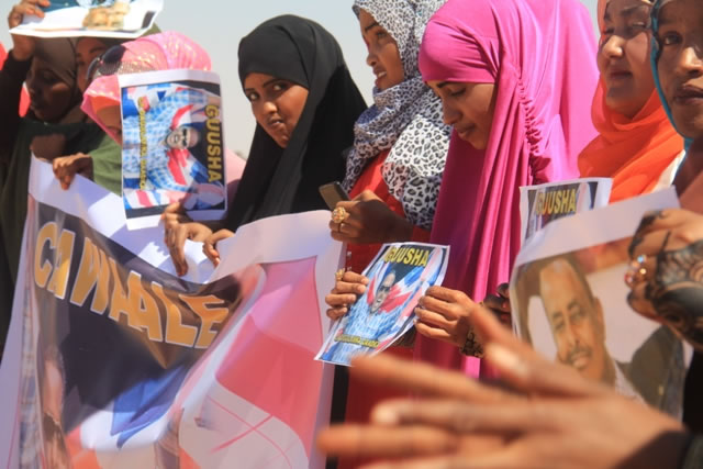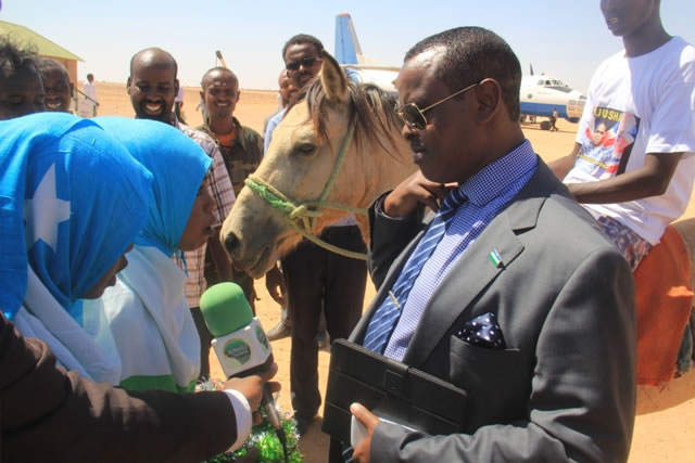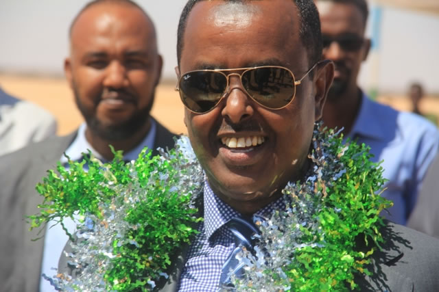 Abuukar Cawaale ayaa waxaa garoonka kusoo dhaweeyay dadweyne aad u fara badan oo watay sawirkiisa iyo mas’uuliyiin sare oo ka tirsan maamulka Puntland ee Soomaaliya.