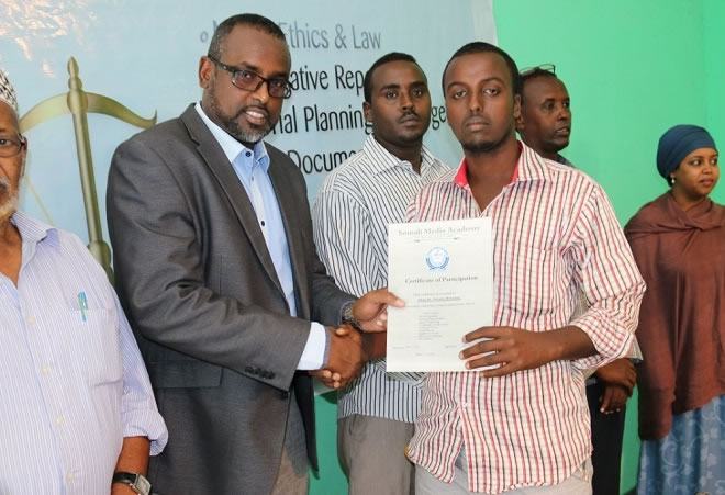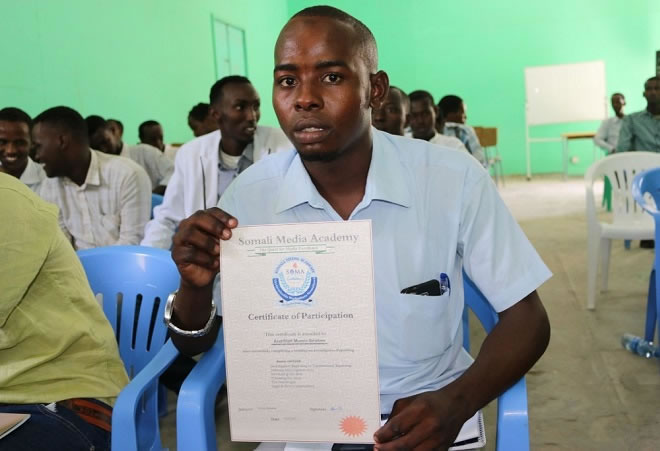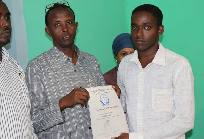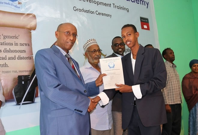 Talaado, Feberaayo 17, 2015 (HOL) — Illaa 120-arday ayaa loogu soo gunaanaday tababar saxaafadda Muqdisho, kaasoo ay ka baranayeen Machadka Somalia Media Academy oo bixiya tababarrada saxaafadeed.