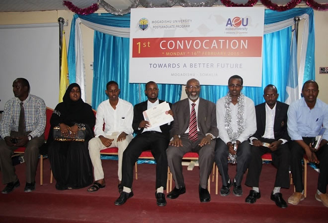 Talaado, Feberaayo 17, 2015 (HOL) — Munaasabad ballaaran oo ay ku qalin-jabinayeen in ka badan 122-arday oo dhameysatay daraasaadka sare ee Master-ka iyo Diploma oo ay iska kaashanayeen Jaamacadda Muqdisho iyo labada Jaamacadood ee kala ah ASIAE UNIVERSITY iyo OPEN UNIVERSITY ayna ka qayb-galeen qaybaha Bulshada, sida Jaamacadaha, ururrada Haweenka, Dalladaha Waxbarashada ardayda Qalin-jabineysay iyo waaliddiintooda.