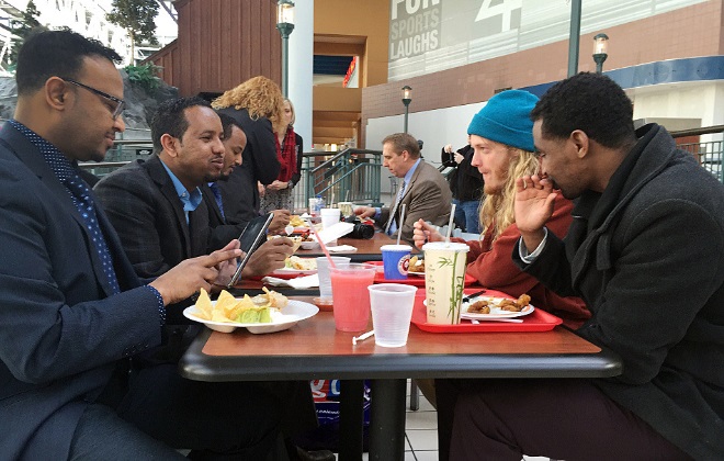 Afyare, Mukhtaar iyo Farxiyo Khaliif oo ah agaasimaha guud ee urur u dooda haweenka Geeska Afrika, iyagoo ka mid ahaa tiro Soomaali ah oo shalay si wadajir ah ugu qadeeyay Mall of America, iyadoo goobta ay ku sugnaayeen qaar ka mid ah wariyeyaasha Soomaaliyeed ee gobolkaas ka howlgala.
