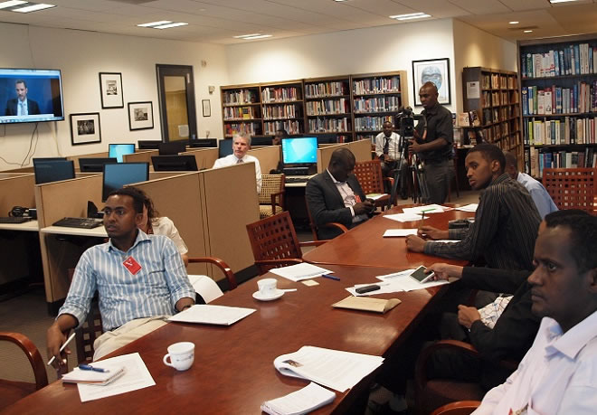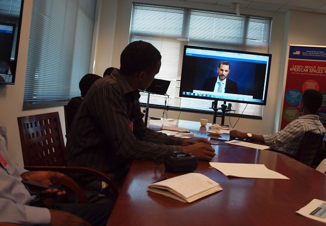 Shirkaas Jaraa’id ee Online-ka ahaa, ayaa Wariyayaasha Soomaaliyeed ee ku nool Dalka Kenya waxay oga qeyb galeen Safaarada Mareykanku uu ku leeyahay Magaalada Nairobi ee xarunta wadanka Kenya, iyadoona wariyayaal badan oo joogo wadamo kala duwan ay qadka internet-ka soo galeen; si ay u dhagaystaan isla markaana su’aalo u weydiiyaan labadaas masuul ee ka tirsan dowlada Mareykanka.
