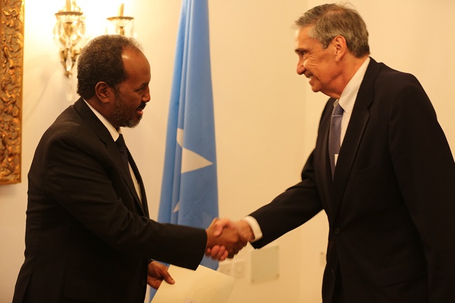 Xasan Sheekh Maxamuud ayaa danjiraha cusub u xaqiijiyay in Somalia ay soo si weyn u soo dhaweynayso in xiriirka labada dal uu noqdo mid iskaashi oo gacan ka geysta dib u soo kabashada Somalia.