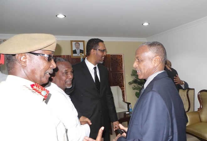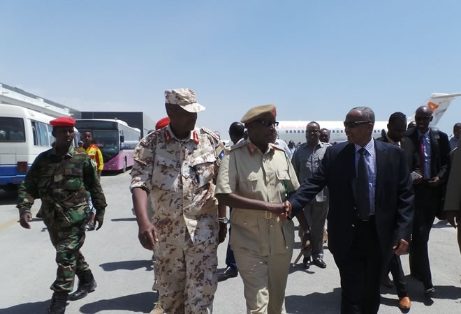 Abaanduulihii hore ee ciidamada xoogga dalka, Jen. C/kariin Yuusuf Dhega-badan oo isna dhawaan Muqdisho dib ugu soo laabtay ayaa ka mid ahaa dadkii soo dhaweeyay wasiirka magacaaban ee wasaaradda gaashaandhigga Somalia.