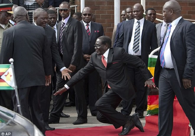 Khamiis, Feberaayo 05, 2015 (HOL) — Madaxweynaha dalka Zimbabwe, Robert Mugabe oo 90-jir ah dhawaanna loo doortay guddoomiyaha sannadkan ee ururka Midowga Afrika ayaa ku kufay roog loo fiidiyay garoonka diyaaradaha magaalada Harare ee xarunta ah, ka-gadaal markii uu dib ugu laabtay shalay oo Arbaco ahayd Zimbabwe.