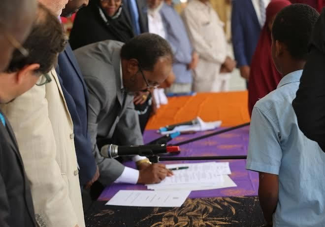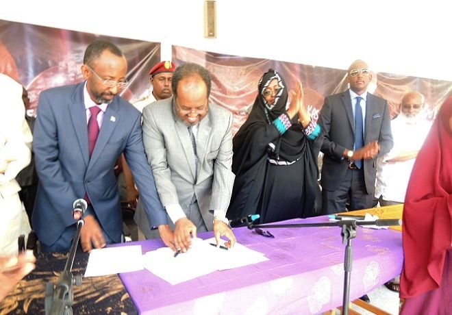 Xasan Sheekh ayaa munaasabadda ka sheegay inuu ku faraxsan yahay inuu maanta qalinka ku duugo dukumentigan muhiimka ah ee heshiiska caalamiga ah ee ilaalin doona xuquuqda carruurta Soomaaliyeed.