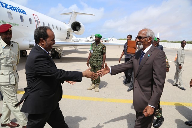 Wafdiga madaxweynaha ayaa waxaa kusoo dhaweeyay baarlamaanka xubno ka tirsan labada gole ee dowladda oo uu ku jiray afhayeenka baarlamaanka, Maxamed Sheekh Cismaan Jawaari.