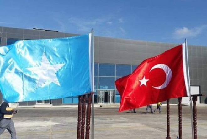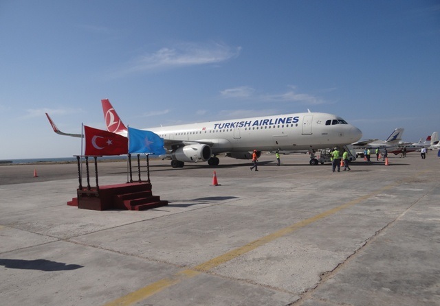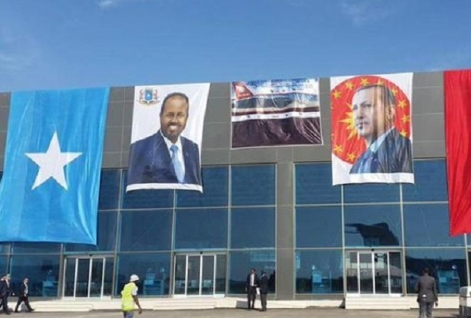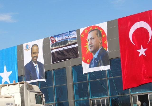 Garoonka diyaaradaha Muqdisho ayaa lagu xardhay sawirrada madaxweynaha Soomaliya Xasan Sheekh iyo madaxweynaha Turkiga Recep Erdogan, waxaa kaloo lagu sharraxay garoonnka calammada dalalka Turkiga iyo Somalia; iyadoo amniga garoonka diyaaradaha ay si aad ah u adkeeyeen ciidammo ka tirsan kuwa amniga Soomaaliya.