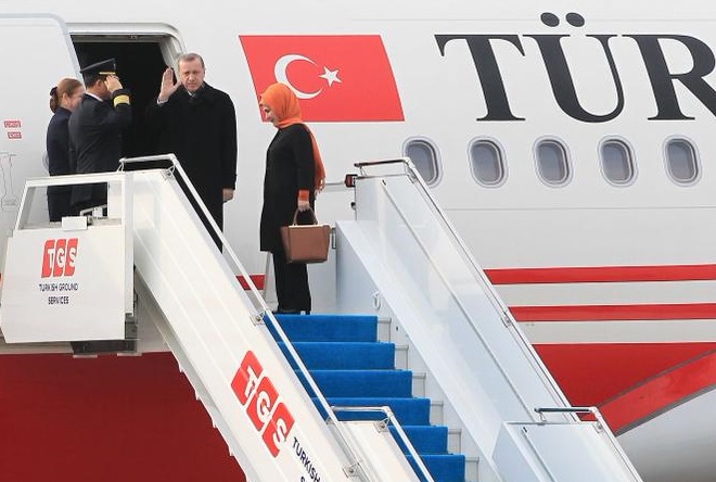 Ammaanka garoonka diyaaradaha iyo waddooyinka ku dhow ayaa si aad ah loo adkeeyay, iyadoo madaxweynaha Turkiga ay la socoto xaaskiisa iyo xubno ka tirsan golaha xukuumadda iyo baarlamaanka dalkiisa.