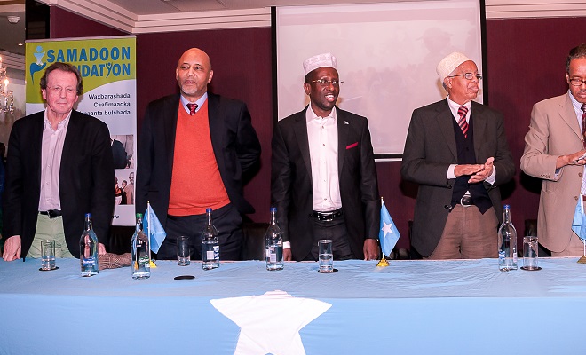 Axad, Janaayo 25, 2015 (HOL) — Madaxweynihii hore ee Somalia, Sh. Shariif Sh. Axmed ayaa magaalada Bristol ee dalka Britain xalay kaga dhawaaqay urur samafal oo lagu maga-caabay Samadoon Foundation.