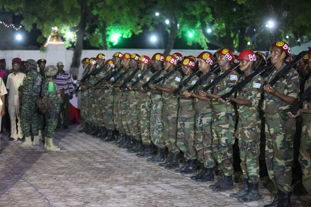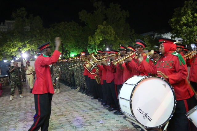 Ugu dambeyn, markii la gaaray 12:00 habeenino saqdii dhexe ayaa Calanka Somalia laga taagay xarunta, iyadoo mas’uuliyiintii dowladda ay salaan-sharaf ka qaateen cutubyo ka tirsan ciidamada xoogga dalka.