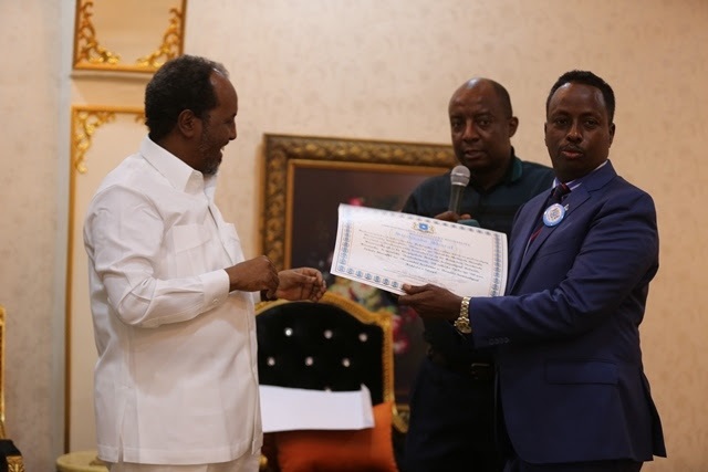 Intii munaasabadu socotay ayuu madaxweyne Xasan Sheekh wuxuu shahaaddooyin sharaf guddoonsiiyay gudiyadii kala duwanaa ee ka qayb-qaatay isku-dubbaridka Munaasabadaha Toddobaadka Xorriyadda Soomaaliya oo soo billaabatay 26-kii Juun.