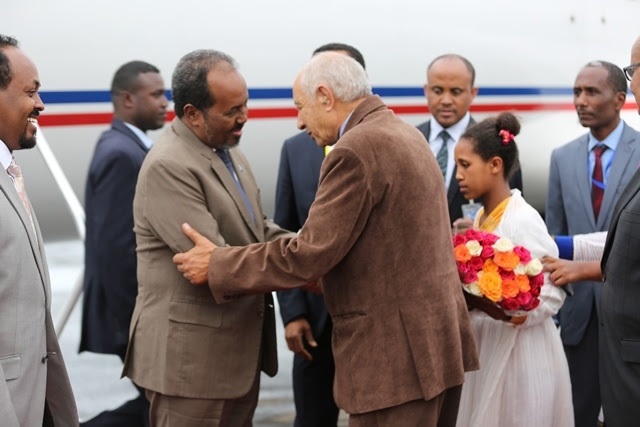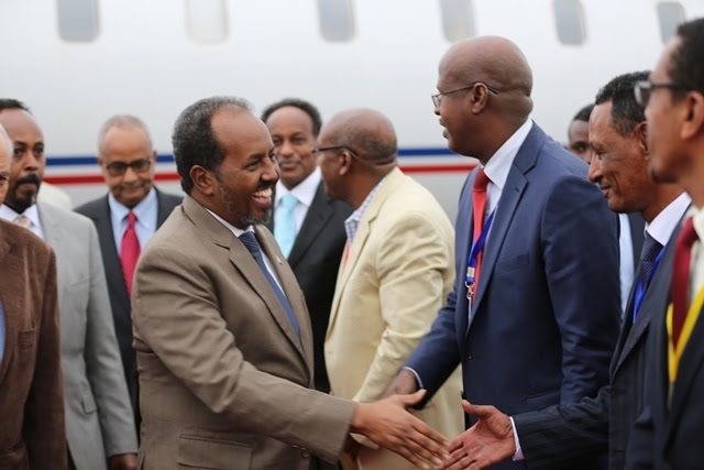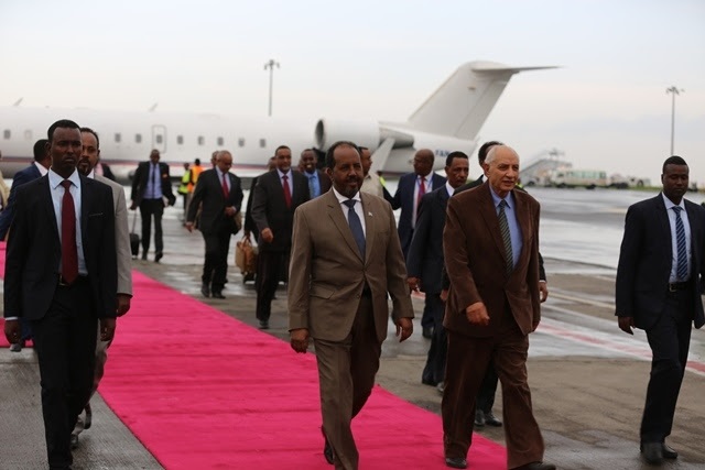 Ugu dambeyn, Xasan Sheekh iyo Wafdigiisa ayaa Waxaa Garoonka Diyaaradaha ee Addis Ababa kusoo dhaweeyay Mas’uuliyiin ka tirsan dowladda Itoobiya iyo Hawl-wadeennada Safaaradda Soomaaliya ee Addis Ababa.