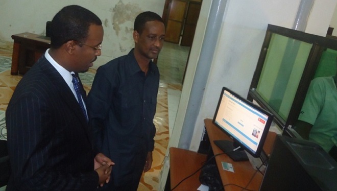 Isniin, Luuliyo 13, 2015 (HOL) — Wasiir ku xigeenka Wasaaradda Maaliyadda Somalia, Maxamud Xayir Ibraahim iyo Xisaabiyaha Guud ee Qaranka, Axmed Yuusuf Muumin (Siraaji) ayaa maanta booqday Bangiga Dhexe  oo ay ka socotay bixinta mushaarka shaqaalaha rayidka ah ee dowladda, waxayna kormeer kusoo sameeyeen qaaybaha kala duwan ee Bangiga.