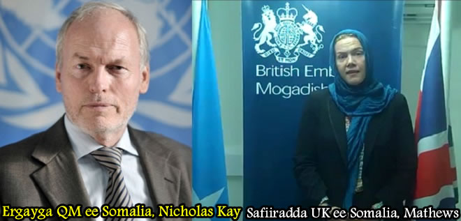 Khamiis, Luuliyo 16, 2015 (HOL) — Wakiilka Qaramada Midoobay ee Somalia, Nicholas Kay iyo Safiiradda Britain ee Somalia, Harriet Mathews ayaa ugu Hambaleeyay Shacabka Soomaaliyeed Maalinta Ciidul-Fidriga oo Berri ku beegan.