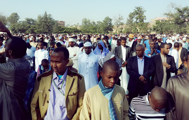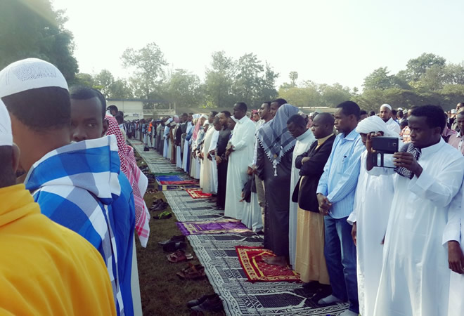 Garoonka Salaada Ciida ee magaalada Gaarisa ee Gobalka Waqooyi-bari ee Kenya, waxaa isagana saaka iskugu soo baxay dad weyne aad u tiro badnaa oo halkaas ku wada tukaday Salaada Ciida.