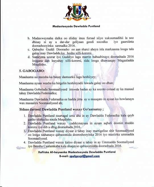 AKHIRSO: War-saxaafadeedka kasoo baxay Madaxtooyada Puntland;