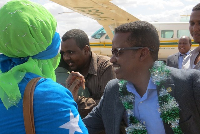 Wafdigaan ayaa Waxaa Garoonka Diyaaradaha Ugaas Khaliif ku soo dhaweeyay Xubnaha Maamulka Heer Hobol iyo Degmo, Siyaasiyiin, Saraakiisha ciidamada Dowladda iyo kuwa Midowga Afrika ee AMISOM, odayaal, waxgarad iyo qaar ka mid ah ururada bulshada.