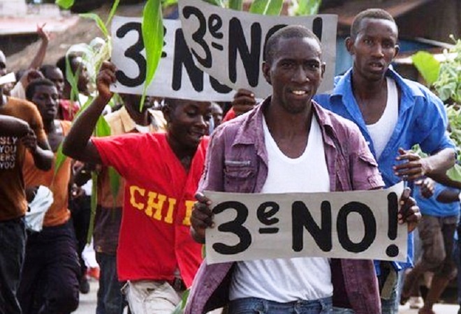 Maalintii Khamiista gellinkeedii hore ayaa boqollaal arday ah waxay isu-soo-bax ka qaban-qaabiyeen bartamaha Bujumbura; iyagoo ujeeddadoodu ahayd inay ka hortagaan inuu si rasmi ah madaxweynuhu ugu gudbiyo guddiga doorashada qorshihiisa uu dib ugu isugu sharraxayo.