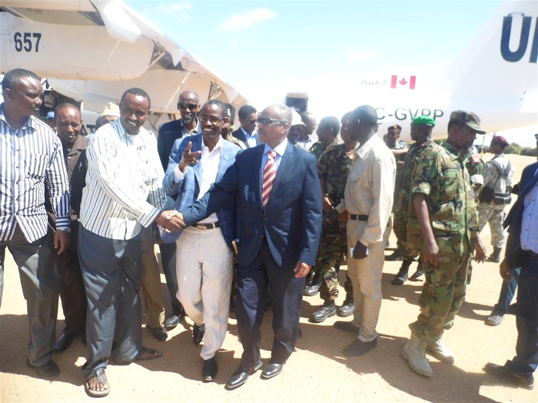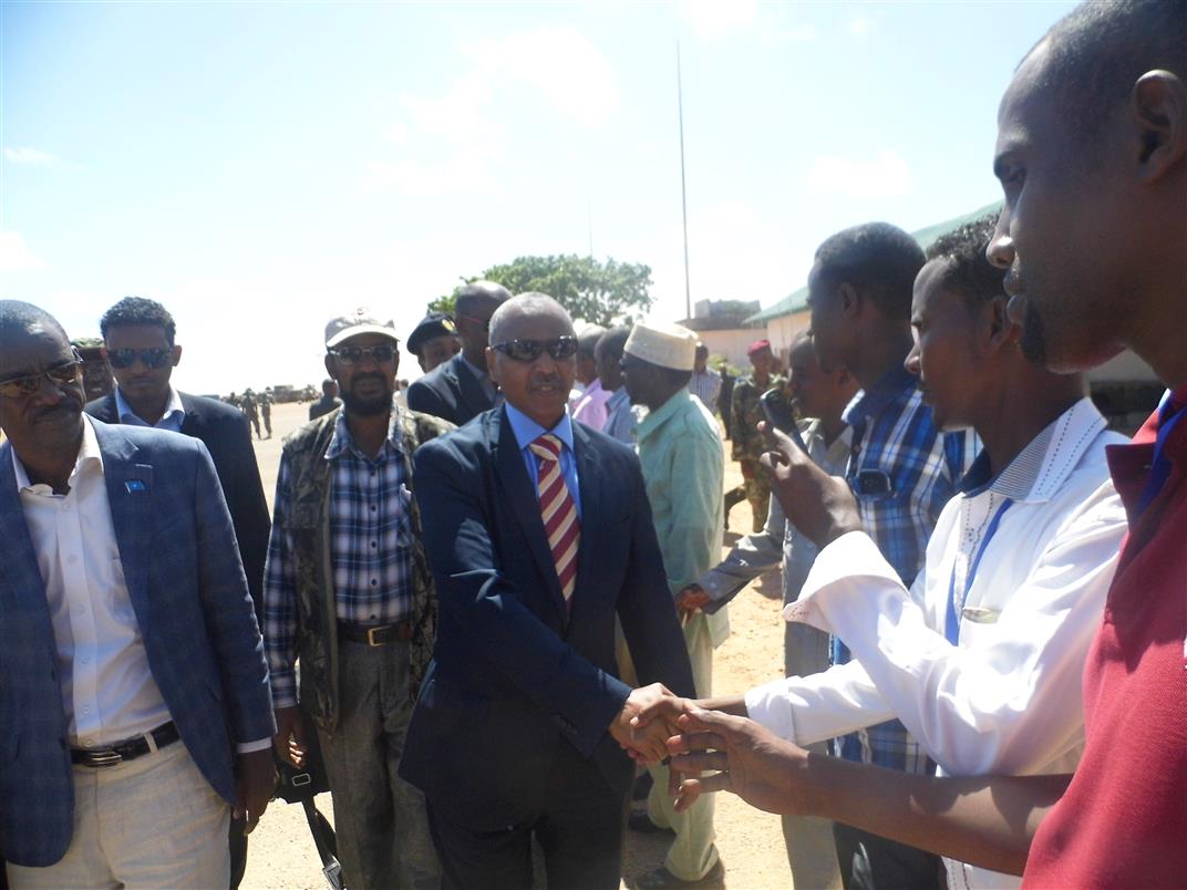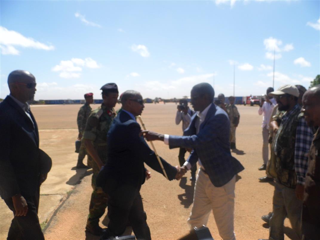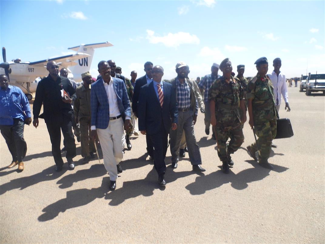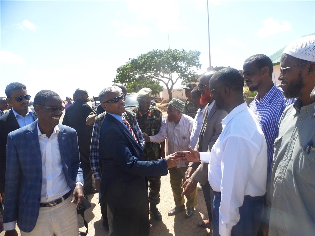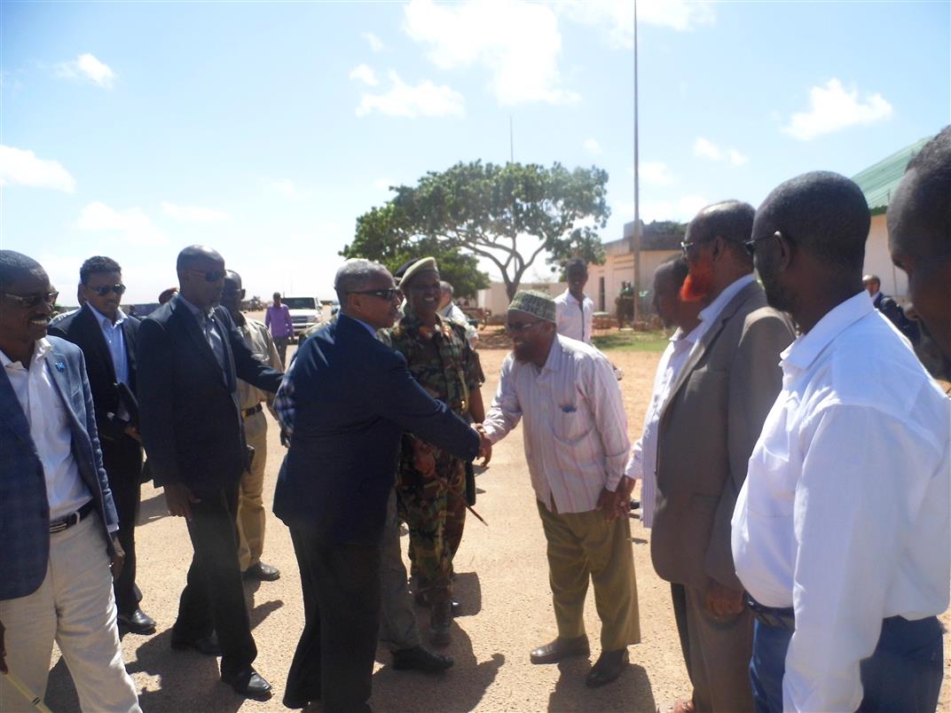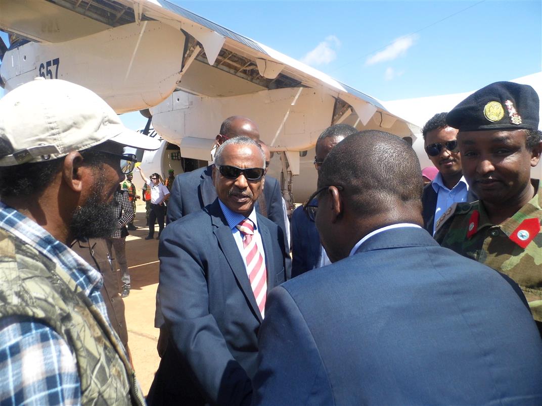 Wafdiga ayaa markii uu kasoo dagay garoonka diyaaradaha magaalada Kismaayo waxaa halkaasi si diiran ugu soo dhaweeyay madaxweeyne kuxigeenka Jubbaland C/laahi Sheekh Ismaaciil (Fartaag) iyo xubno ka tirsan golaha wasiirada maamulka Jubbaland.