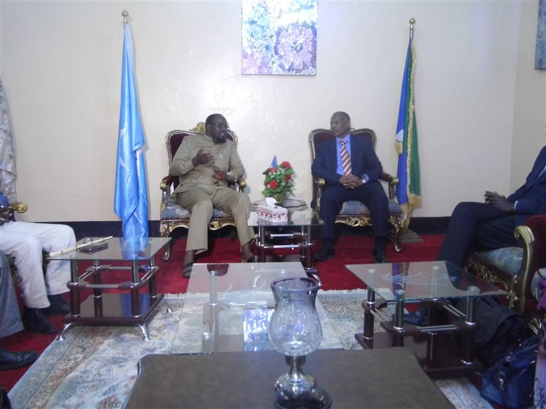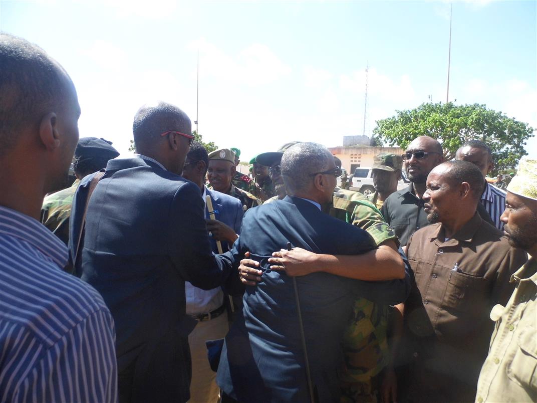 Kadib salaan iyo soo dhaweyn, waxaa wafdigii uu hogaaminayay wasiirka gaashaandhigga loo gelbiyay xarunta madaxtooyada Jubbaland, halkaasoo uu ku sugnaa madaxweeynaha Jubbaland Axmed Max'ed Islaam (Axmed Madoobe).