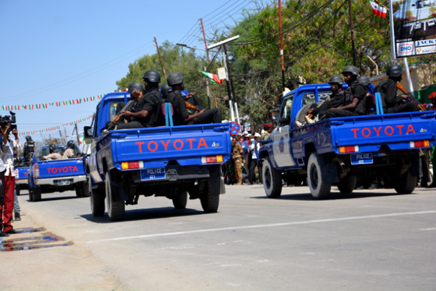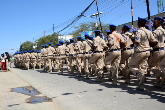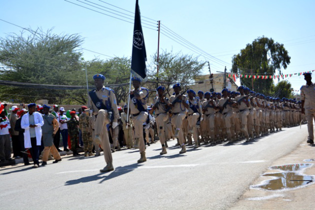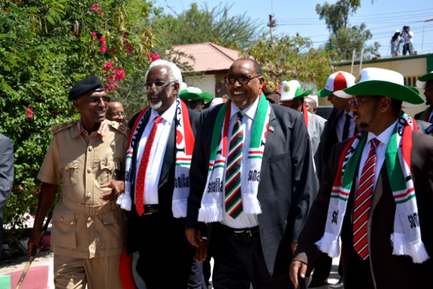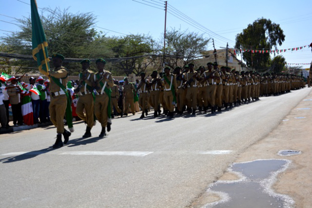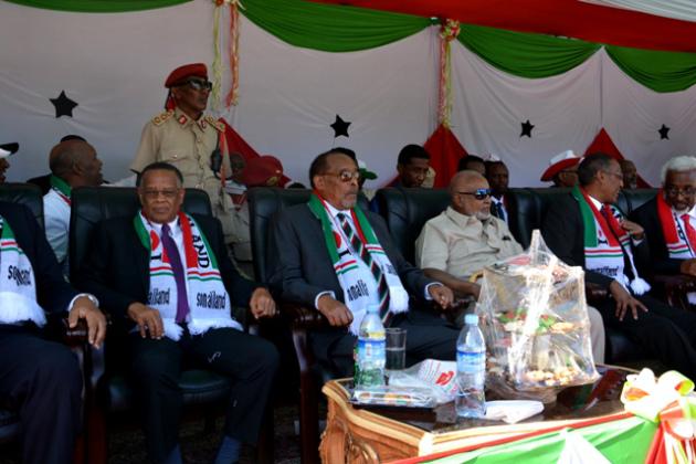 Madaxweynaha Somaliland Siilaanyo oo ay garab taagnaayeen taliyeyaasha ciidamadda iyo shirgudoonka goleyaasha Qaranka ayaa daawanayey dhoolatuska shacabka iyo Ciidanka kala duwan ku soo bandhigayaan hortoodda.