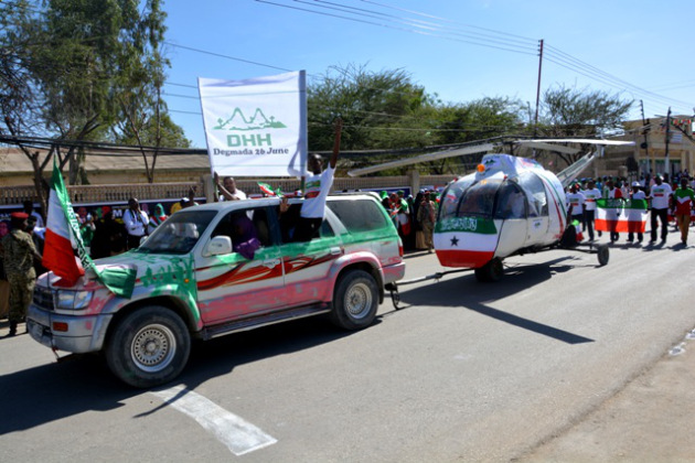 Isniin, May 18, 2015 (HOL) — Waxaa Gobollada iyo Degmooyinka Saakay Waaberigii looga dareeray xuska munaasibadda 18-ka May oo ku beegan maalintii Somaliland ka go’day soomaaliya inteedda kale, isla markaana ay ka noqotay midnimaddii ay lixdankii la gashay Soomaaliya.