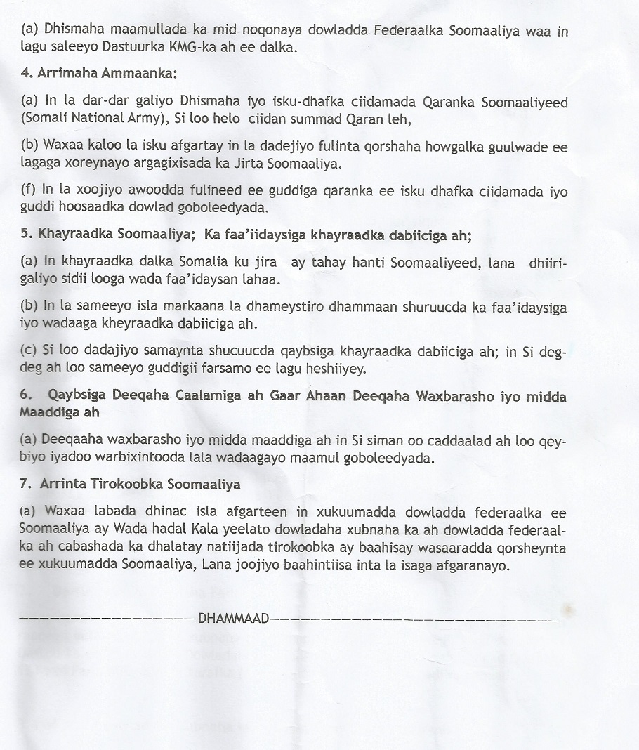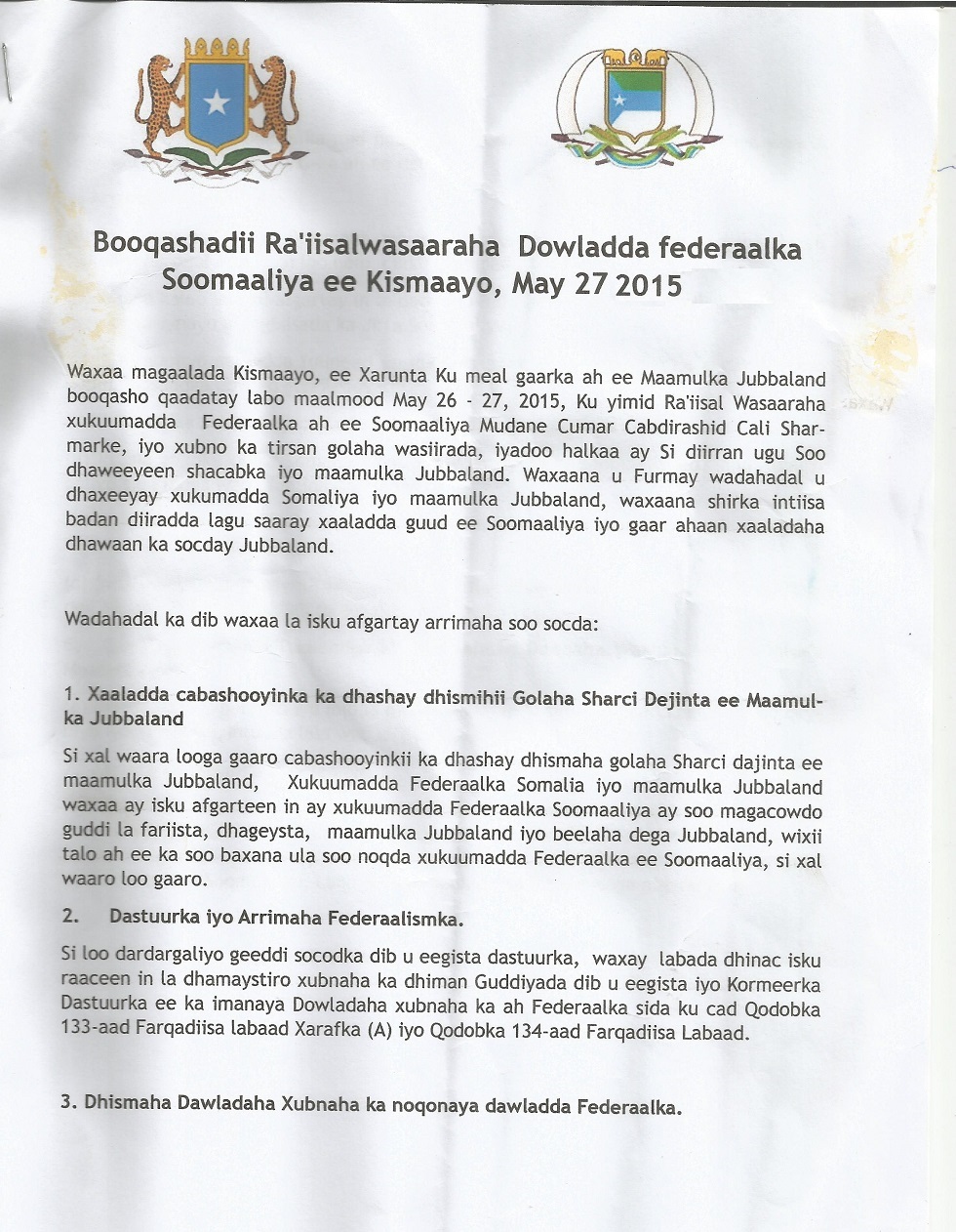 DAAWO: War-murtiyeedkii lagu kala saxiixday degmada Kismaayo iyo Kormeerkii RW Somalia