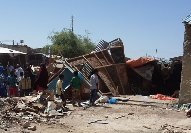 Arbaco, May 27, 2015 (HOL) — Dowladda Hoose ee degmada Laascaanood ayaa maanta burburisay guryo u badan goobo ganacsi oo ku yaalay bartanka degmada, kaddib markii ay sheegtay inay waddo laami ah mari doonto goobaha gurayahan laga burburiyay.