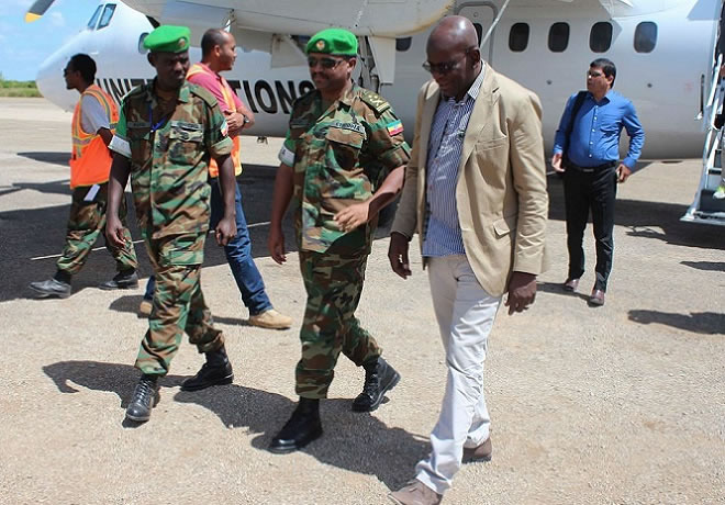 Arbaco, May 27, 2015 (HOL) — Mas’uulka ugu sarreeya xafiiska Qaramada Midoobay ee caawinta AMISOM, Amadou Kamara ayaa maanta booqasho ku tagay degmada Baydhabo ee Gobolka Bay, isagoo la kulmay saraakiisha ugu sarreysa Ciidamada Itoobiya ee Qaybta ka ah howgalka AMISOM ee Somalia.