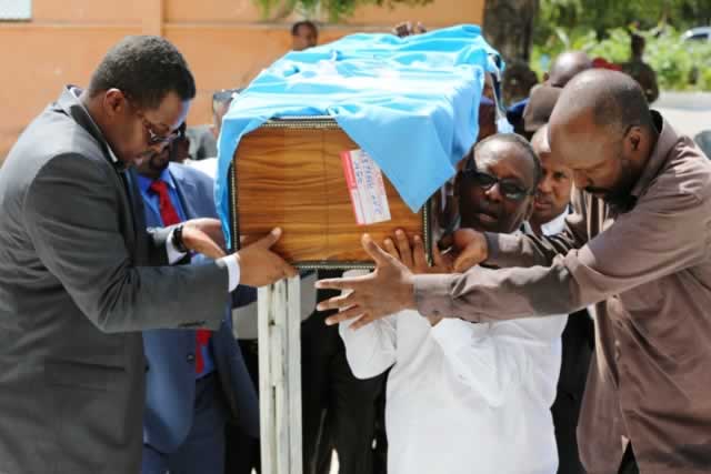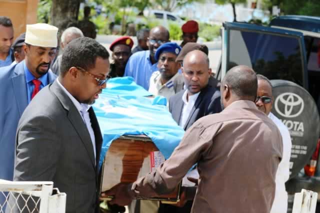 Khamiis, November 26, 2015 (HOL) — Waxaa saaka garoonka diyaaradaha Aden Adde ee Muqdisho laga soo dajiyay maydka Allaha u raxmadeen safiirki Somalia u fadhiyay dalka Masar, ahaana ergaygii Somalia ee ururka Jaamacadda Carabta, marxuum C/llaahi Xasan Maxamuud oo dhawaan ku geeriyooday Qaahira.