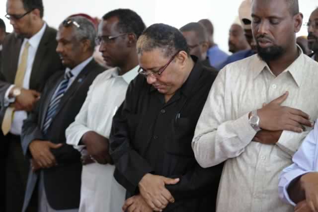 Marxuumka ayaa waxaa salaadii Janaasada lagula tukaday garoonka Aadan Cadde, iyadoo janaasadiisa ay ka qaybgaleen, mas'uuliyiin uu ka mid ahaa madaxweynaha Somalia Xasan Sheekh Maxamuud, mas’uuliyiin ka tirsan labada gole ee Dowladda FS iyo xubno kale.