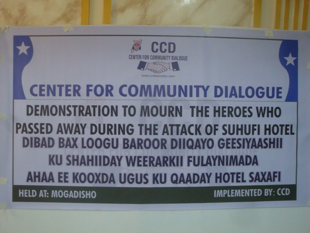 Sidoo kale, guddoomiyaha ururka haweenka ee gobolka Banaadir, Jawaahir Baarqab ayaa sheegay in bannaan-baxan uu yahay mid looga soo horjeedo xasuuqii Hotel Saxafi, isla markaana ay ka dhii-dhinayaan, waxayna tacsi u dirtay ehellada dadkii ku dhintay weerarkaas oo ay ka mid ahaayeen Jen. Dhega-badan, C/rashiid Il-qeyte iyo Xildhibaan Abtidoon.
