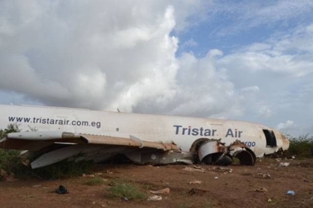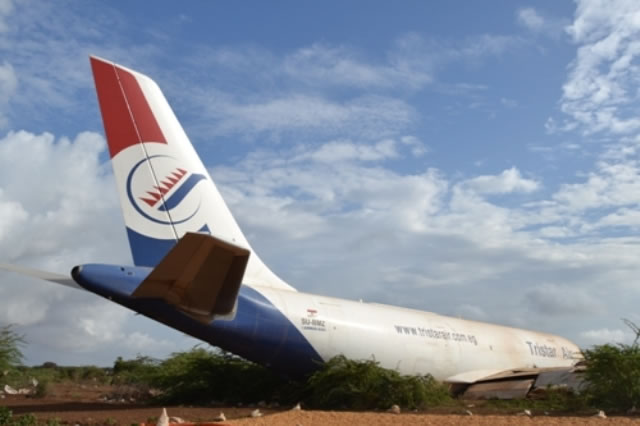 Diyaarada ayaa waxaa burbur xooggan uu kasoo gaaray qaybta hoose iyo weliba baalasha diyaaradda, iyadoo ciidanka AMISOM ay ku sugan yihiin halka ay ku dhacday diyaaradda oo ah dhul beereed.