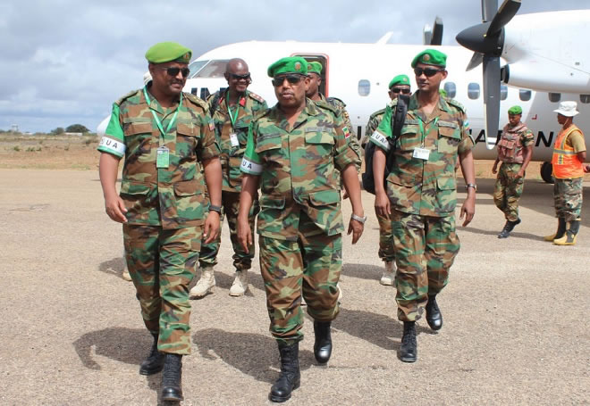 Arbaco, Oktoobar 14, 2015 (HOL) — Taliye ku xigeenka ciidamada lugta AMISOM, Jen. Mohammedesha Zeyinu ayaa soo gunaanaday safarro uu ku tagay magaalooyinka Diinsoor iyo Baardheere oo ka kala tirsan gobollada Bay iyo Gedo ee Koonfurta Soomaaliya. Isagoo kula dardaarmay ciidamada ku sugan inay amniga labadaan degmo adkeeyaan.
