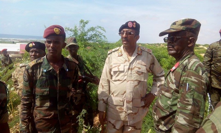 Sabti, Oktoobar 31, 2015 (HOL) — Taliyaha ciidamada xoogga Somalia, Jen. Maxamed Aadan Axmed ayaa maanta kormeeray xerada Jazeera ee duleedka Muqdisho, halkaasoo tababarro ay uga socdaan cutubyo ka tirsan ciidanka millateriga Somalia, isagoo kormeeray dhamaan xerada, wuxuuna warbixino ka dhageystay saraakiisha tababarka bixinaysay oo Soomaali iyo ajnabi isugu jiray.