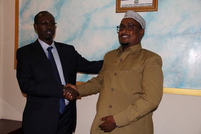 Sabti, Oktoobar 31, 2015 (HOL) — Guddoomiyihii hore ee gobolka Banaadir, ahna Duqa magaalada Muqdisho, Xasan Maxamed Xuseen (Muun-gaab) ayaa maanta guddoomiyaha cusub ee gobolka banaadir iyo duqa Muqdisho, Yuusuf Xuseen Jimcaale geeyay xafiisyada Dowladda Hoose ee Muqdisho ay ku shaqeeyaan.