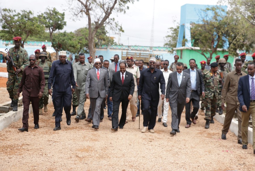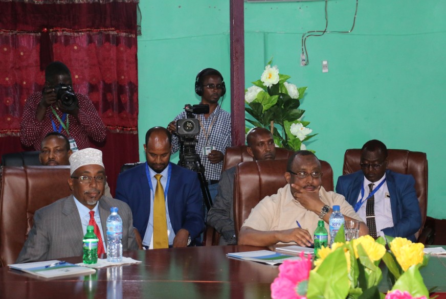Wasiirka Arrimaha Dibadda dalka Itoobiya, Tedros Adhenon, Madaxweyne Xasan Sheekh, Madaxweynaha Galmudug, C/kariin Xuseen Guuleed iyo Madaxweynaha Koonfur-galbeed Shariif Xasan Sheekh Aadan ayaa markii uu shirku soo xirmay ka Ambabaxay Magaalada Kismaayo ee Xarunta Gobolka Jubbada Hoose.
