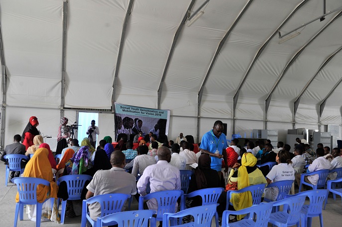 Jimco, September 18, 2015 (HOL) — Xarunta AMISOM ee Muqdisho ayaa waxaa Shalay lagu Qabtay kulan Ujeeddadiisu ahayd in Dhallinyarada Soomaaliyeed lagu Dhiirri-geliyo sidii ay uga Qayb-qaadan lahaayeen Hawlaha Siyaasadeed ee ka socda Somalia.